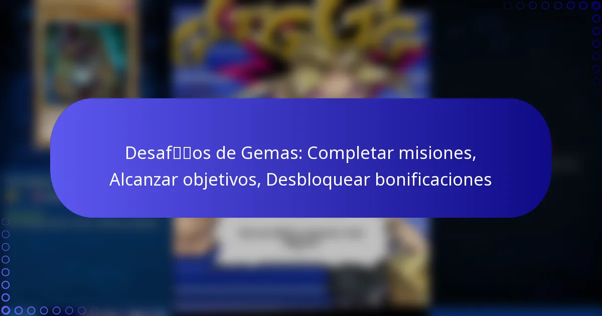 Para mejorar la jugabilidad en los Desafíos de Gemas, los jugadores deben centrarse en una planificación efectiva de misiones, priorización de objetivos y desbloqueo de bonos. Estas estrategias no solo mejoran la eficiencia, sino que también maximizan las recompensas y el disfrute durante el juego.
