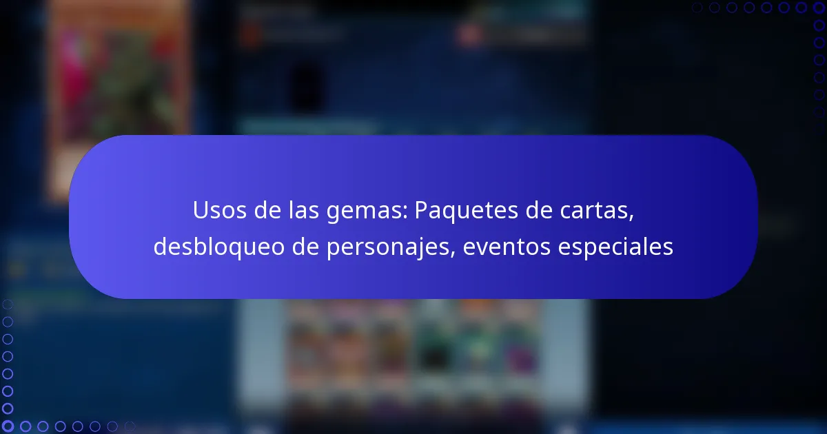 Los eventos especiales que utilizan gemas a menudo brindan a los jugadores oportunidades únicas para desbloquear personajes, adquirir paquetes de cartas o participar en desafíos por tiempo limitado. Estos eventos pueden mejorar el juego y ofrecer recompensas valiosas, haciendo de las gemas un recurso crucial para los participantes activos.