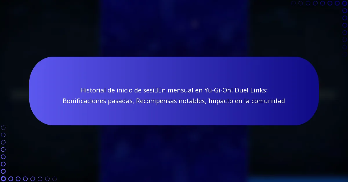 Los bonos de inicio de sesión mensual en Yu-Gi-Oh! Duel Links han proporcionado a los jugadores una variedad de recompensas que mejoran la jugabilidad y la colección. Estas recompensas a menudo incluyen cartas exclusivas, moneda del juego y artículos especiales que contribuyen a la experiencia general del jugador.