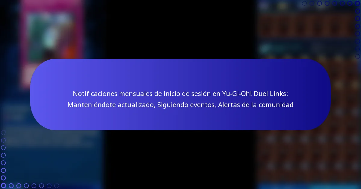 Las Notificaciones Mensuales de Inicio de Sesión en Yu-Gi-Oh! Duel Links son alertas que informan a los jugadores sobre eventos próximos, actualizaciones de la comunidad y recompensas por iniciar sesión en el juego. Estas notificaciones ayudan a los jugadores a mantenerse comprometidos e informados sobre los desarrollos del juego y promociones especiales.